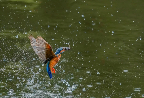一、乐山鱼咡湾公园拍普通翠鸟捕鱼,我用索尼Alpha 9+索尼SEL400F28GM,该机是用电子取景器, 屏幕下方显示曝光参数, 在拍摄中根据场景, 天气变化可以迅速调整曝光量, 确保拍摄曝光准确, 克服了单反相机拍摄完后查看的麻烦。我用高速连拍20张/秒 , 由于水面干净、平静,对焦采用广域模式, 只要焦点开始在鸟身上, 无论鸟怎么飞,不管前面是不是出现遮挡,实时追踪的焦点能牢牢抓住它,成功率比较高 ,鸟距离13余米, 天气是阴天,翠鸟俯冲抓鱼相当快, 鸟进入镜框到飞出镜框, 清晰记录了12张, 然后选出满意的片子。